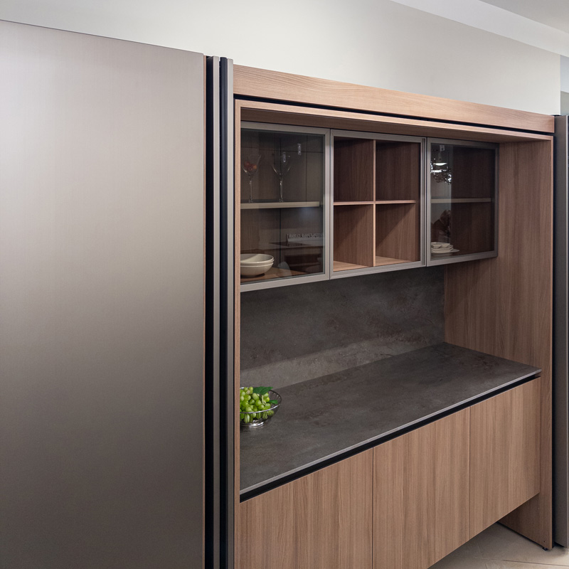 Во-вторых, на стоимость конечного продукта оказывают влияние конструкторские способности будущей кухни. Так как элитные кухни Ernestomeda представлены модульными конструкциями, в них есть определенное количество вариаций размещения шкафов, количества полок и так далее. Чем сложнее конструкция, чем больше она позволяет «играть» с кухней в пользу того или иного варианта, тем выше стоимость.