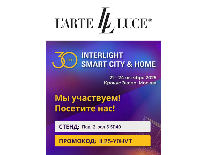 В прошлом году экспозиция L'Arte Luce блистала роскошными люстрами, удивляла настольными светильниками. Что нового интересного представит компания в этом году вы узнаете, посетив выставку. Бесплатный билет можно получить на сайте выставки. применив промокод.