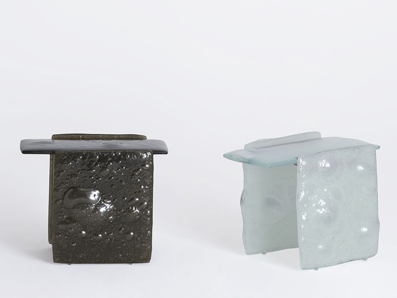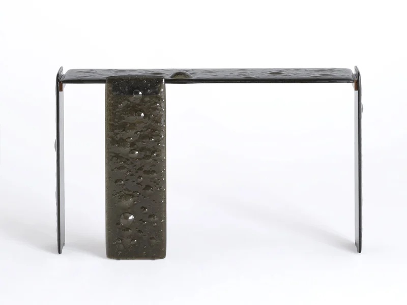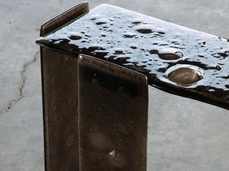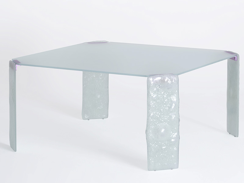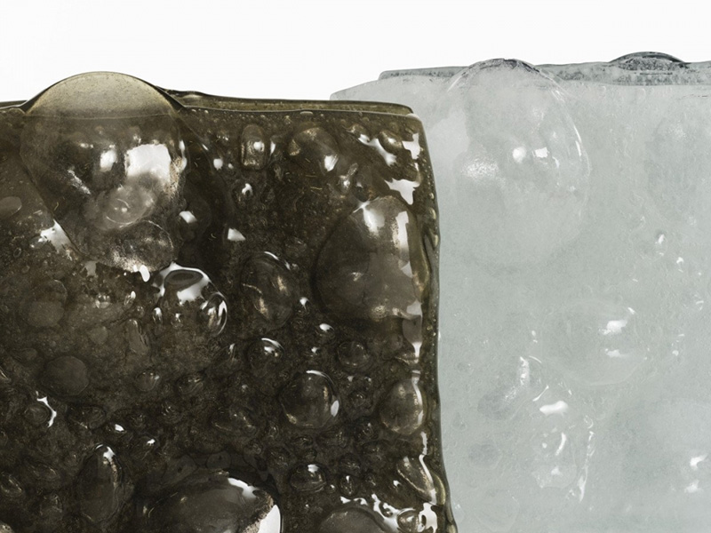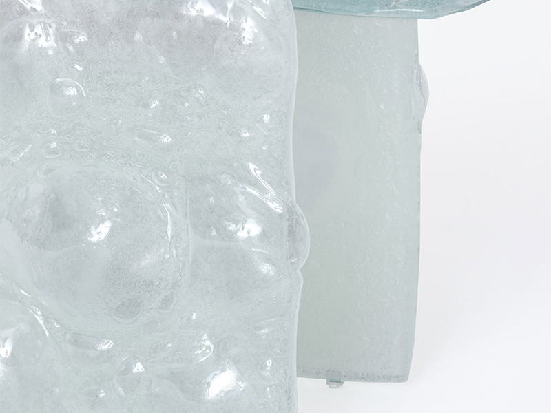В столах, журнальных столиках, консолях и вазах этой коллекции стекло оживает, выходя за рамки традиционных эстетических представлений и превращаясь в живой и удивительный материал. Каждое уникальное изделие, изготовленное из переработанного стекла, которое благодаря термической обработке приобретает мягкую, неровную, почти жидкую поверхность с множеством пузырьков.